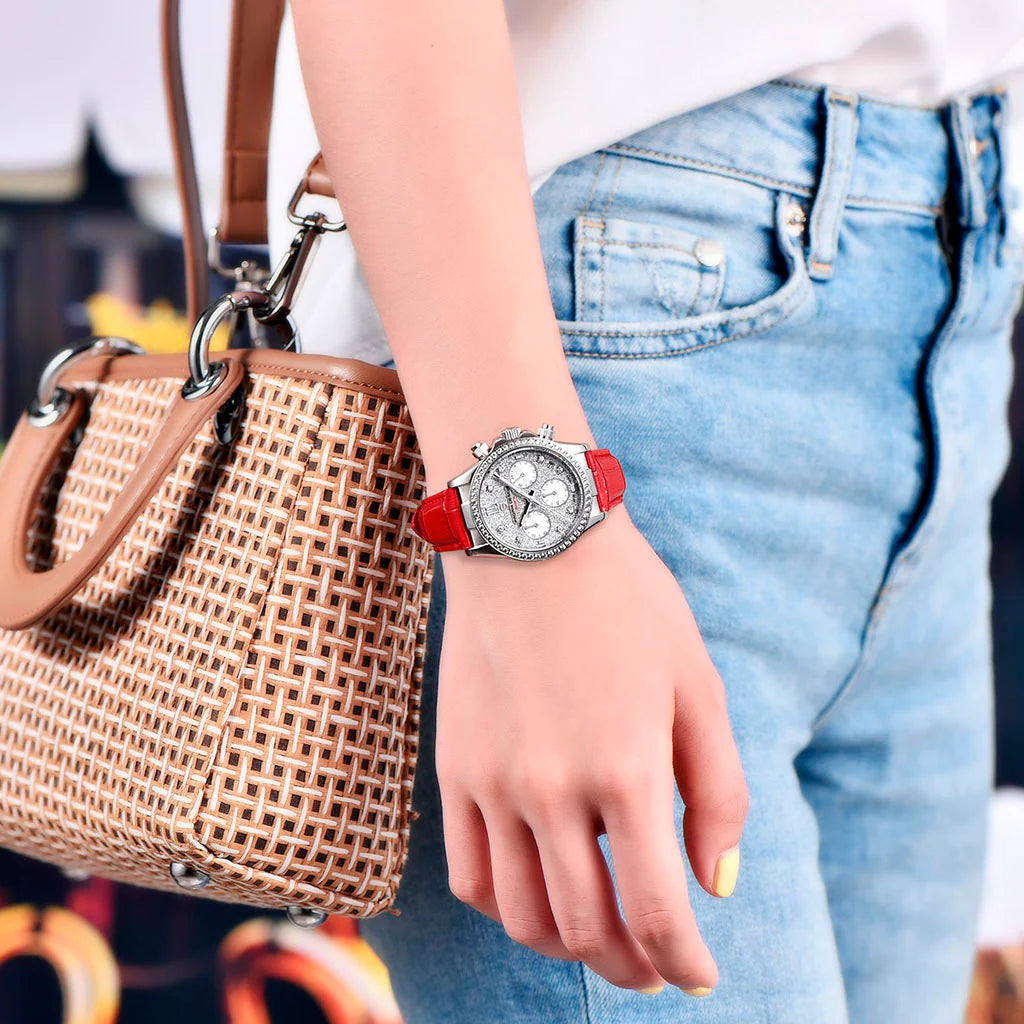 Achetez votre montre Pagani Design Daisy Red pour femme et recevez un emballage exclusif, idéal pour offrir ou pour la ranger avec élégance. Investissez dans la sophistication et la qualité d'une montre qui reflète votre style.