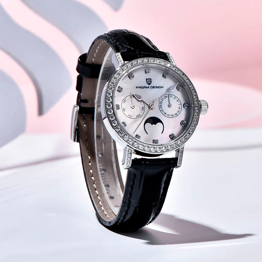 La montre Pagani Design Orchidée Noire pour femme allie élégance et performance, conçue pour les femmes qui souhaitent briller en toute occasion. Que ce soit au travail, pour un événement spécial ou une journée en plein air, cette montre sublimera votre style avec une touche de sophistication et de modernité.