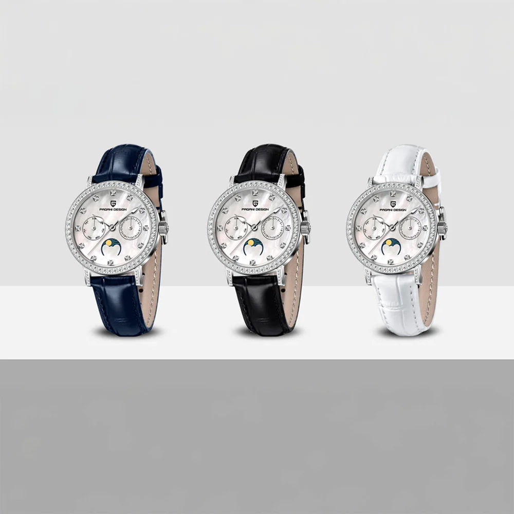Achetez votre montre Pagani Design Orchid Blue pour femme et recevez un emballage exclusif, idéal pour offrir ou pour la ranger avec élégance. Investissez dans la sophistication et la qualité d'une montre qui reflète votre style.
