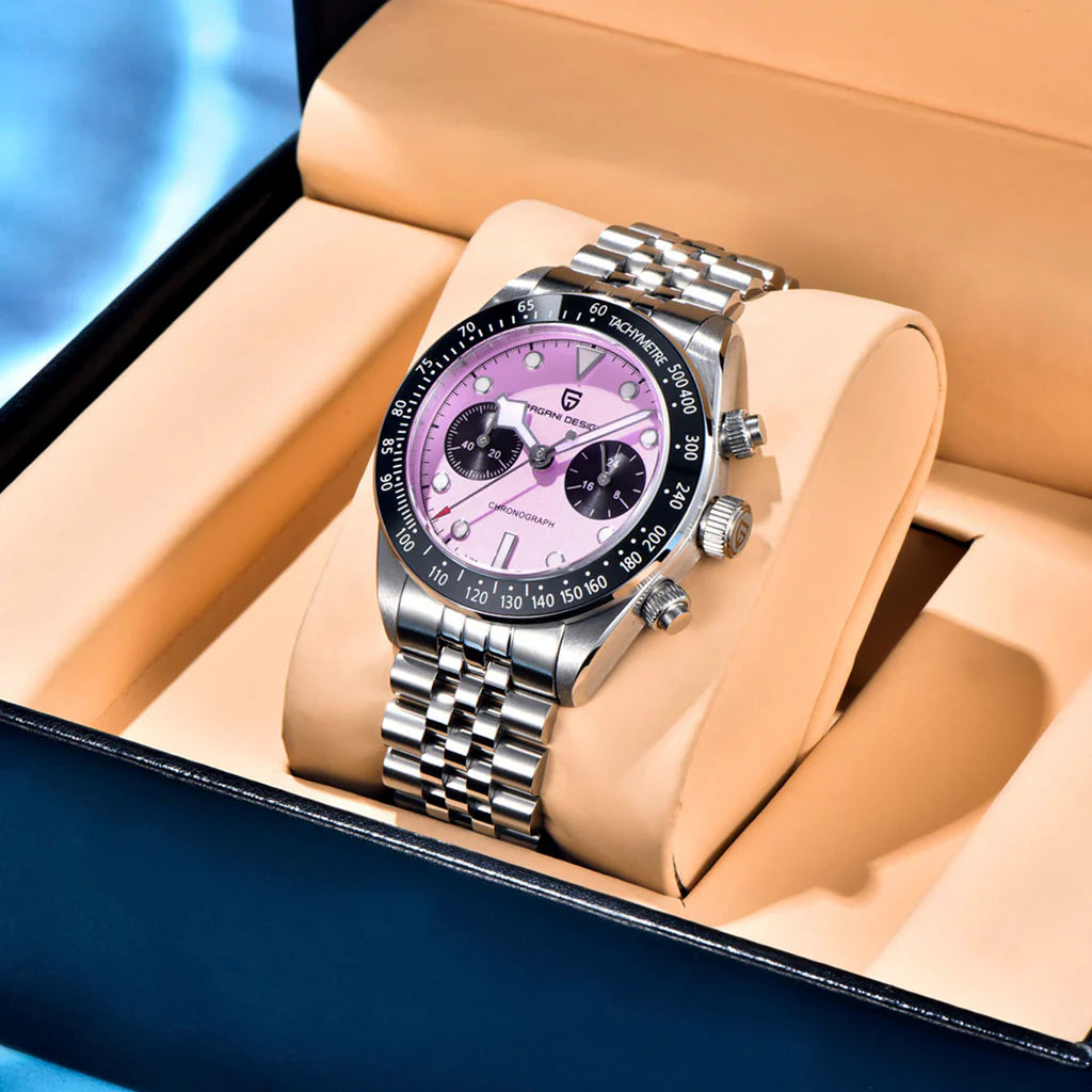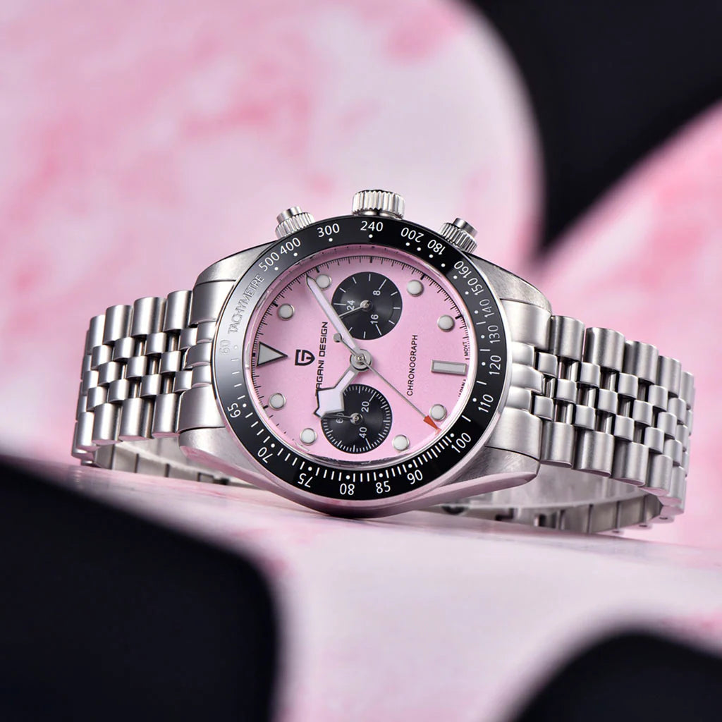 Achetez votre Pagani Design Dash Pink sur notre site web et recevez son emballage. Cette montre est le choix idéal pour ceux qui recherchent qualité et sophistication. Investissez dans la Pagani Design Dash Pink et découvrez l'excellence jusque dans les moindres détails.