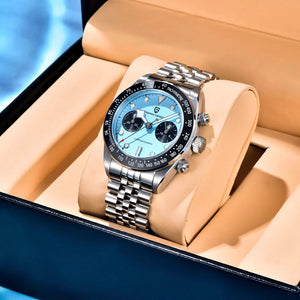 Achetez votre Pagani Design Dash Turquoise sur notre site web et recevez son emballage. Cette montre est le choix idéal pour ceux qui recherchent qualité et sophistication. Investissez dans la Pagani Design Dash Turquoise et découvrez l'excellence jusque dans les moindres détails.