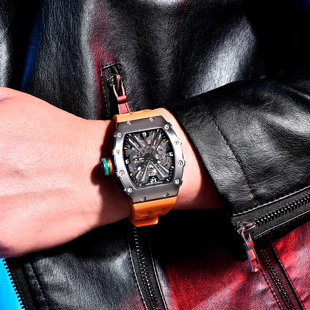 La Pagani Design Monza Silver Orange est fabriquée en acier inoxydable 316L, un matériau hypoallergénique et hautement résistant à la corrosion, offrant une résistance, une brillance et une durabilité exceptionnelles.
