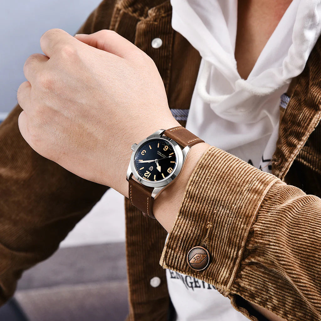 Le bracelet de la Pagani Design Ranger Black Classic Edition est soigneusement confectionné en cuir véritable, alliant résistance et légèreté. Il offre un confort inégalé et la sensation unique d'une montre presque imperceptible au poignet.